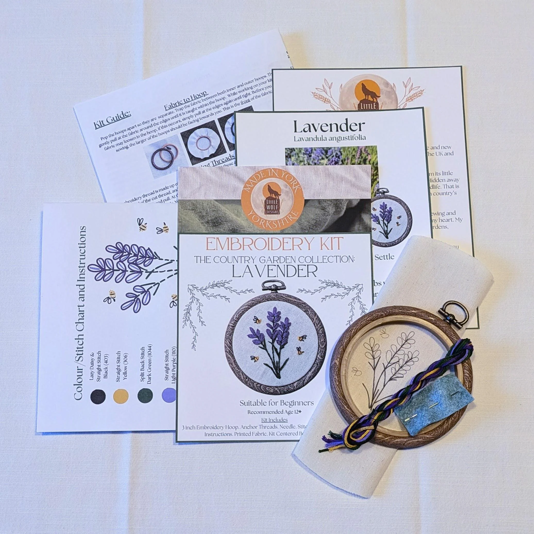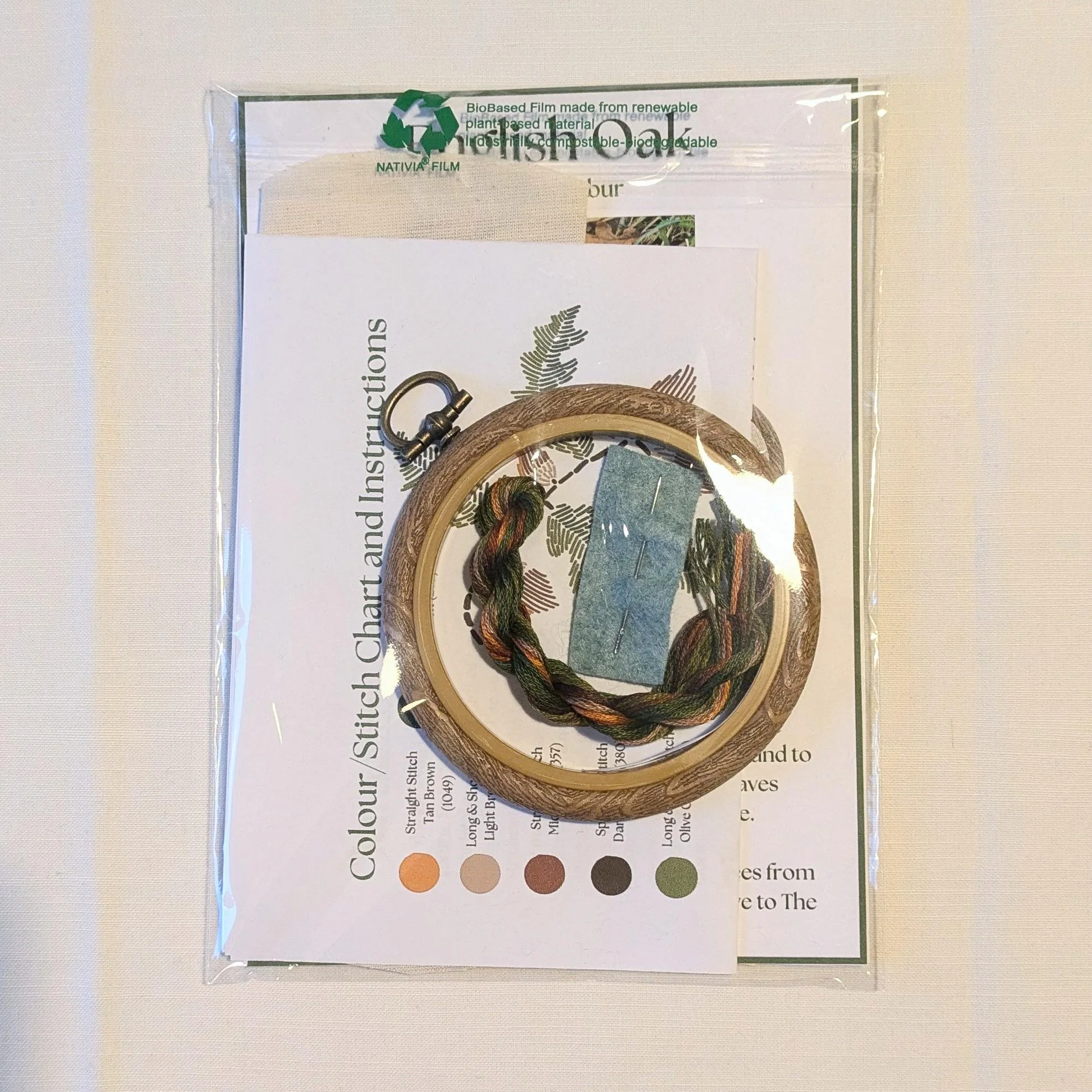 3 inch Embroidery Hoop. Anchor Threads. Needle. Stitch Guide. Kit Guide. Colour Instructions. Printed Fabric. Kit Centered Botanical Backstory.