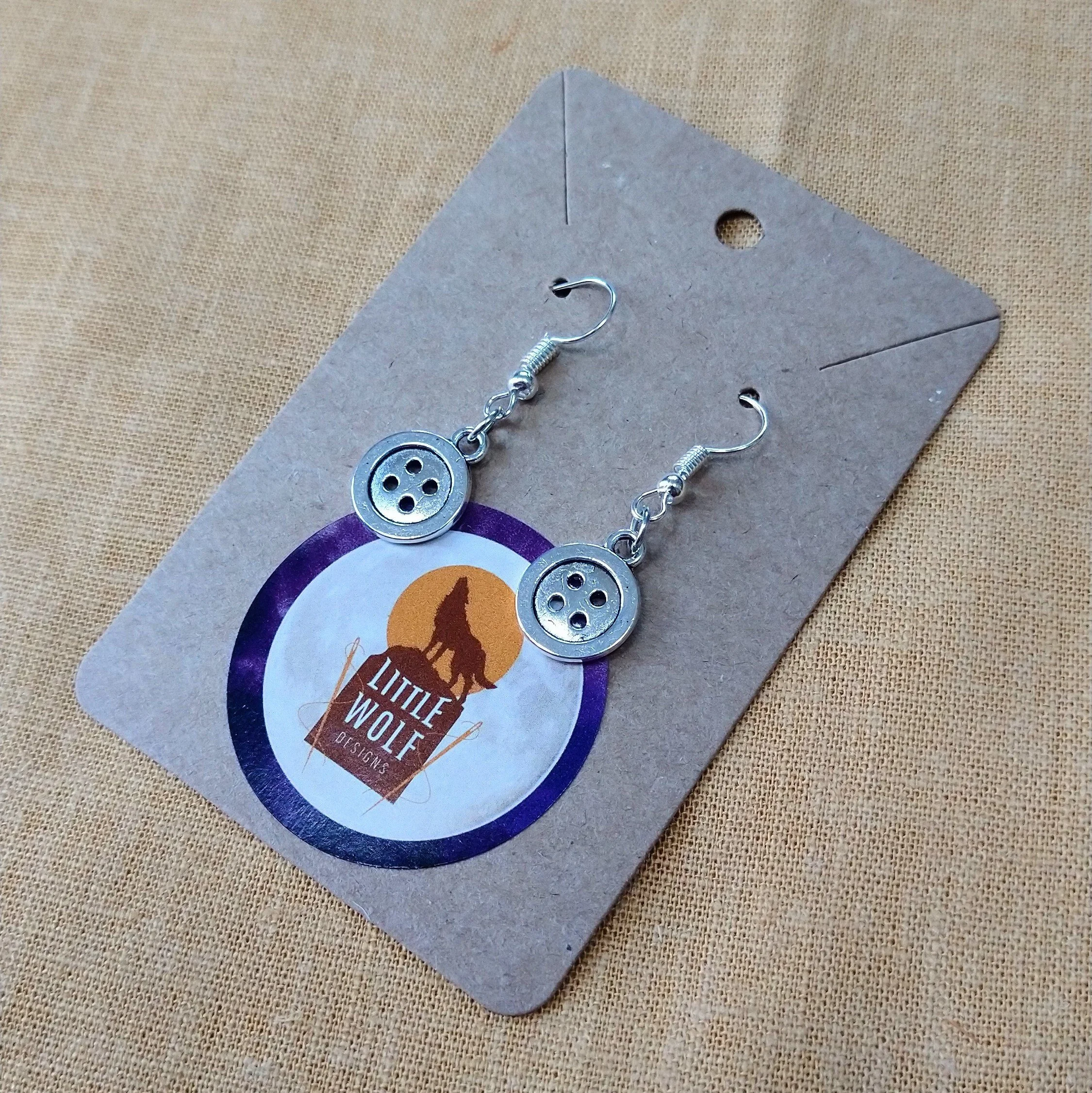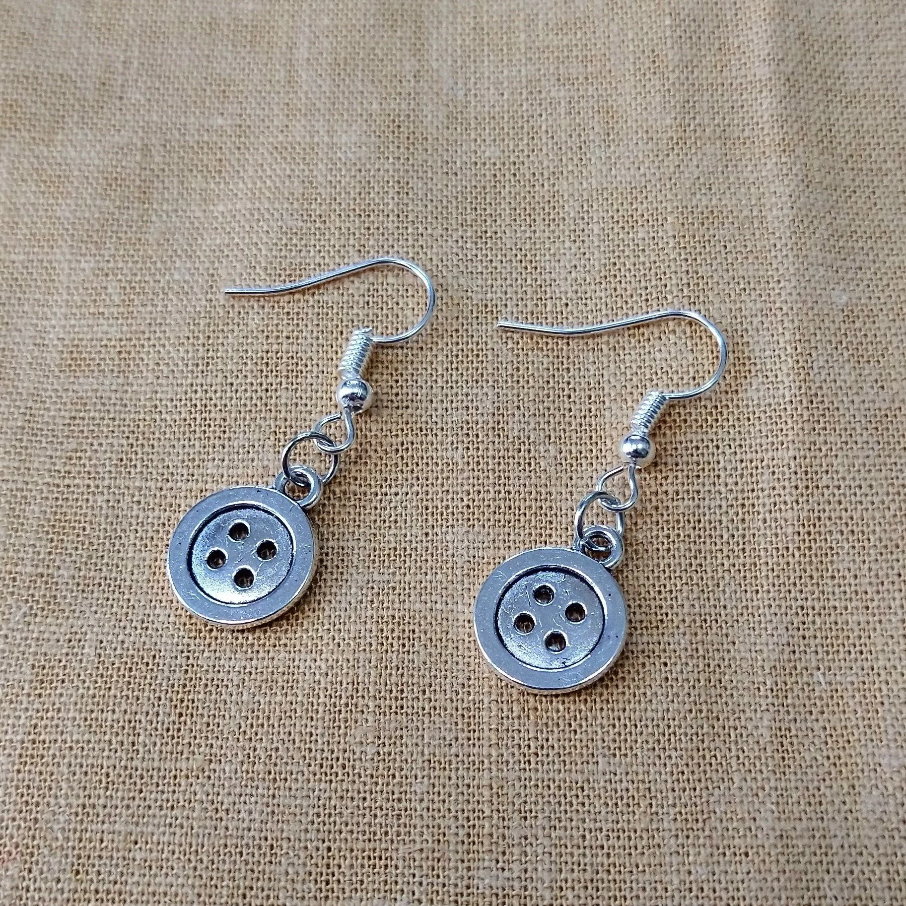 Buttons Haberdashery Notion Silver Earrings - Sewing, Embroidery, Needlework Themed Jewellery