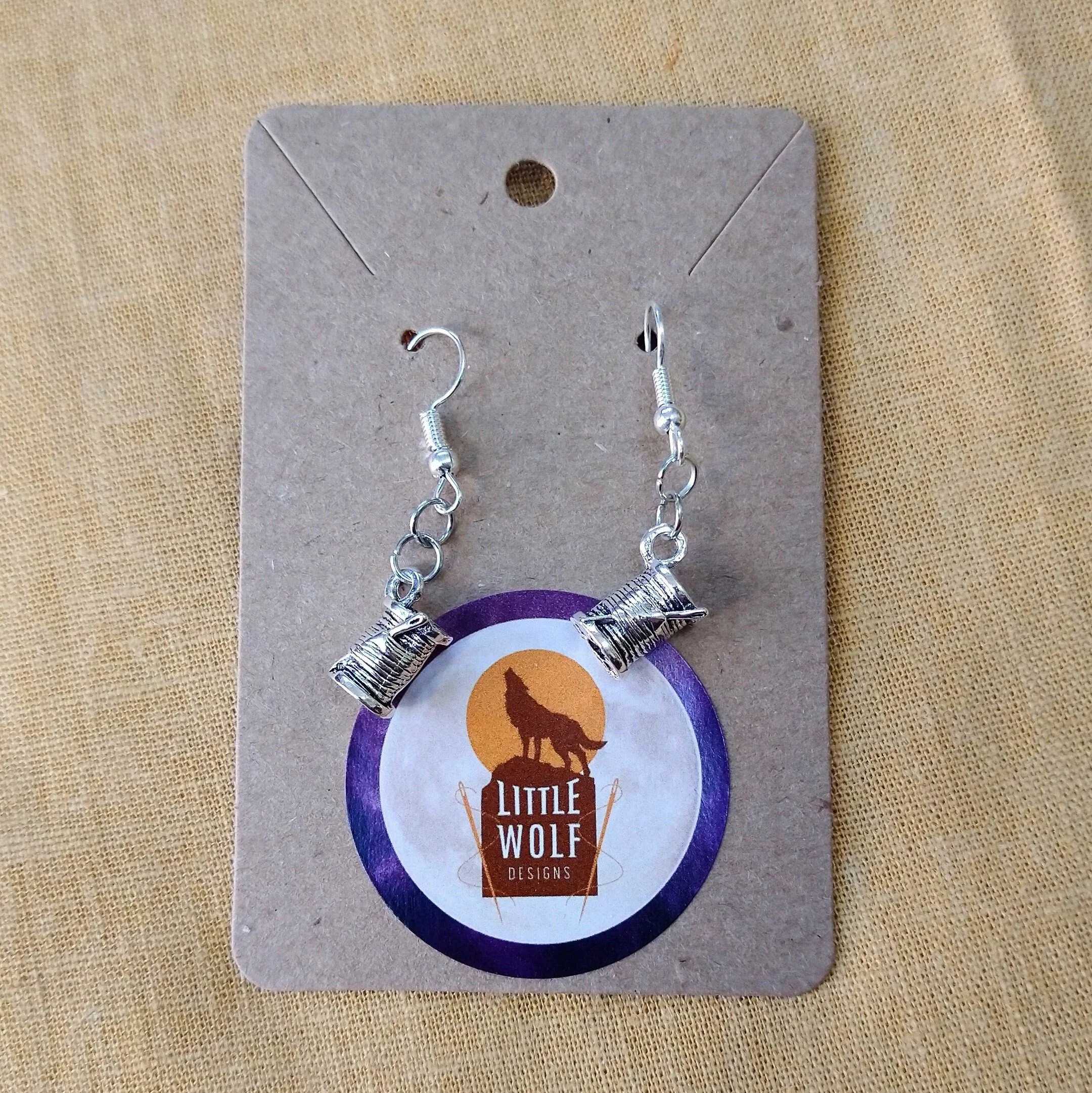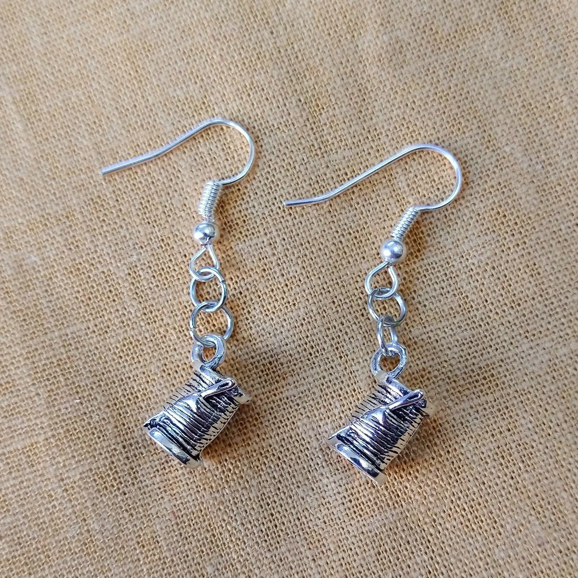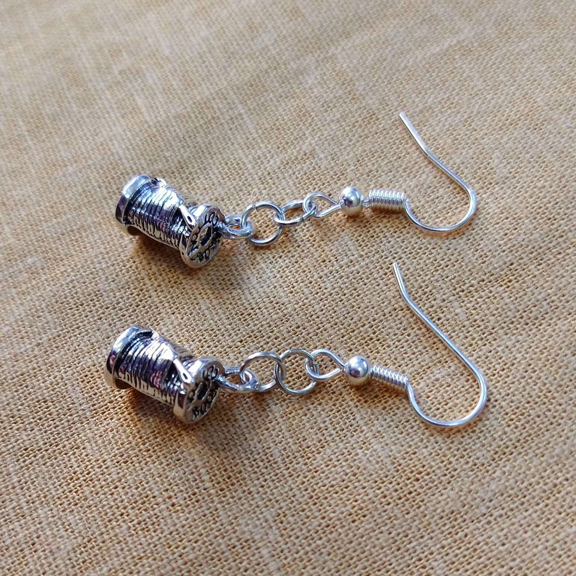 Sewing Bobbin Haberdashery Notion Silver Earrings - Embroidery, Needlework Themed Jewellery