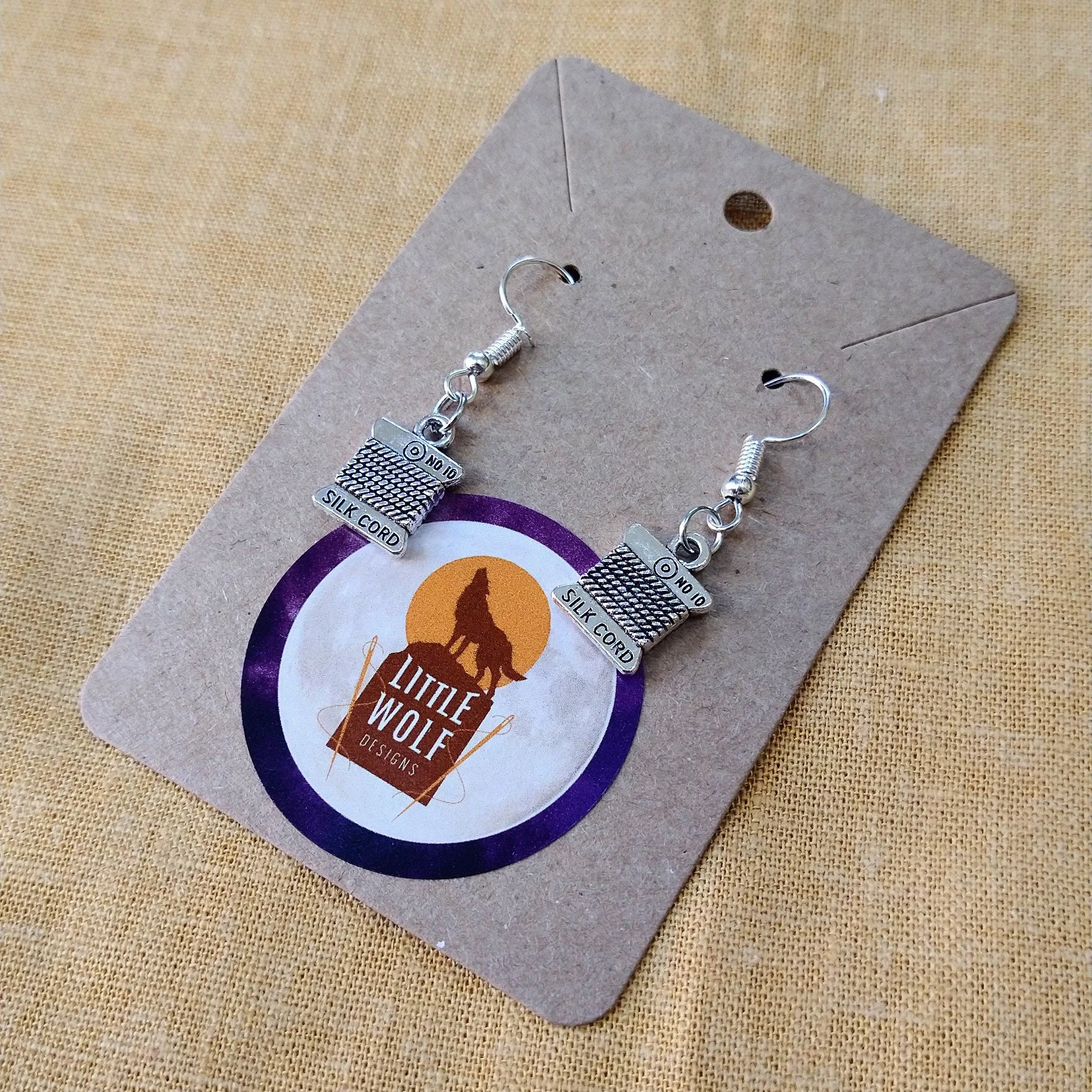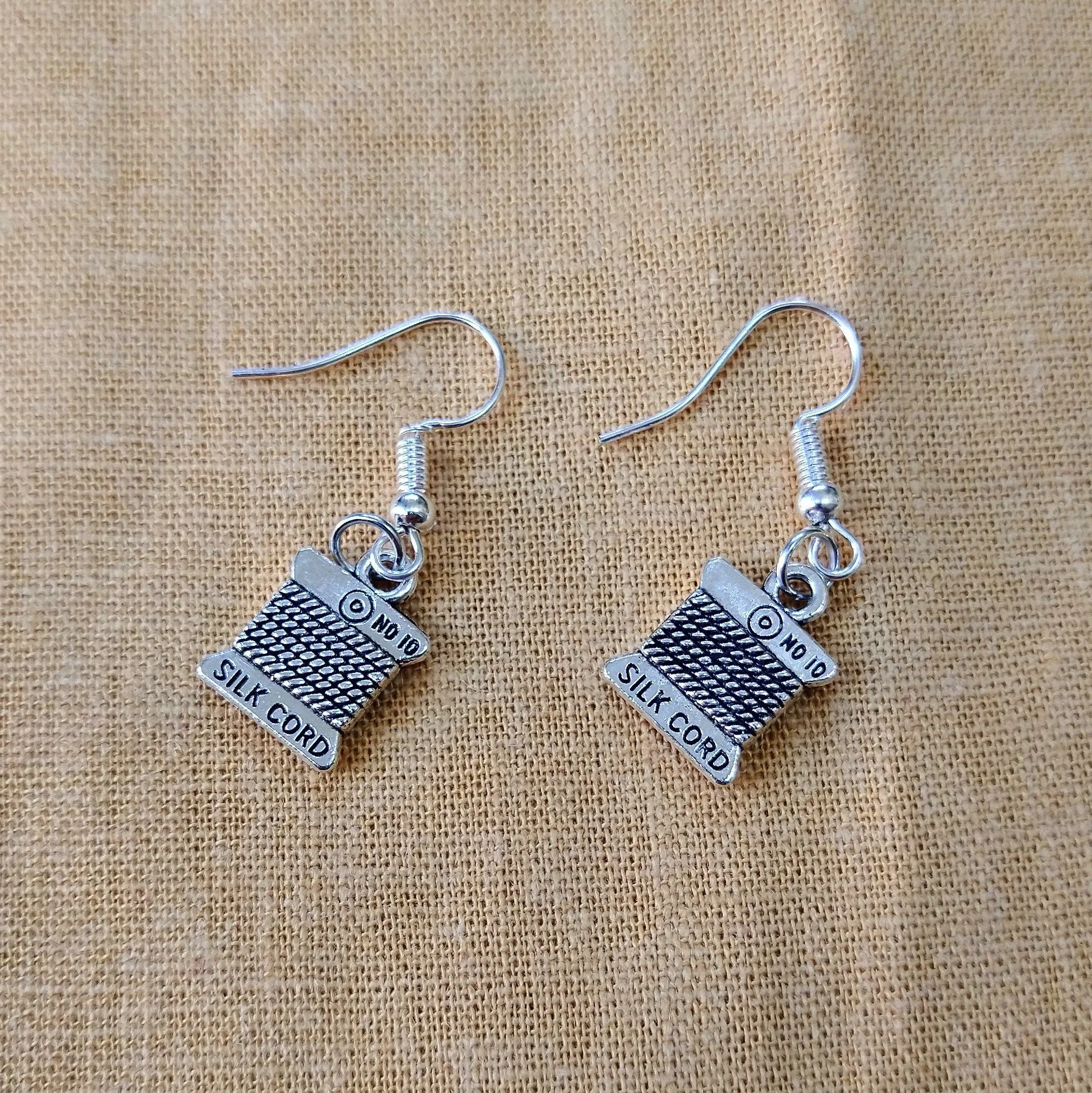 Embroidery Thread Haberdashery Notion Silver Earrings - Sewing, Embroidery, Needlework Themed Jewellery