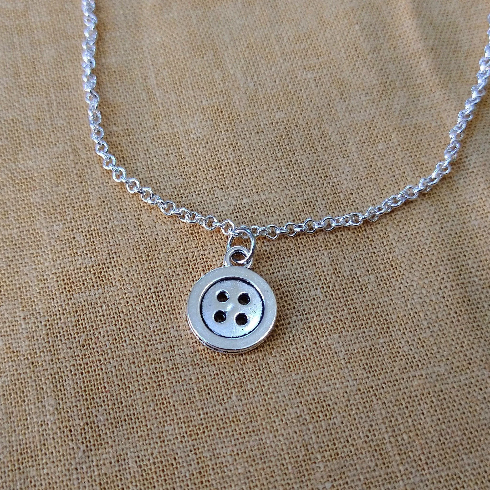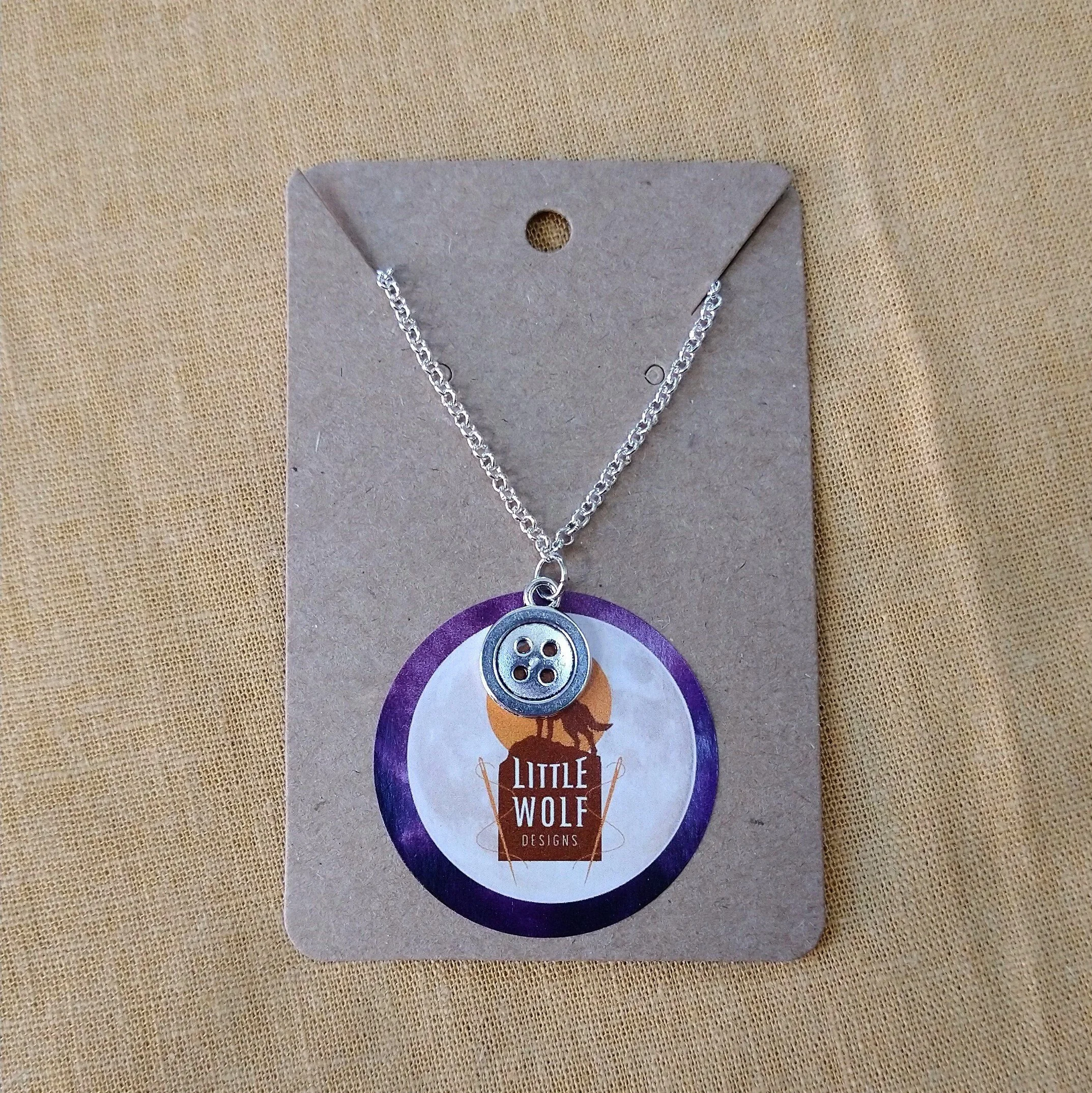 Button Haberdashery Notion Silver Necklace - Sewing Themed Jewellery