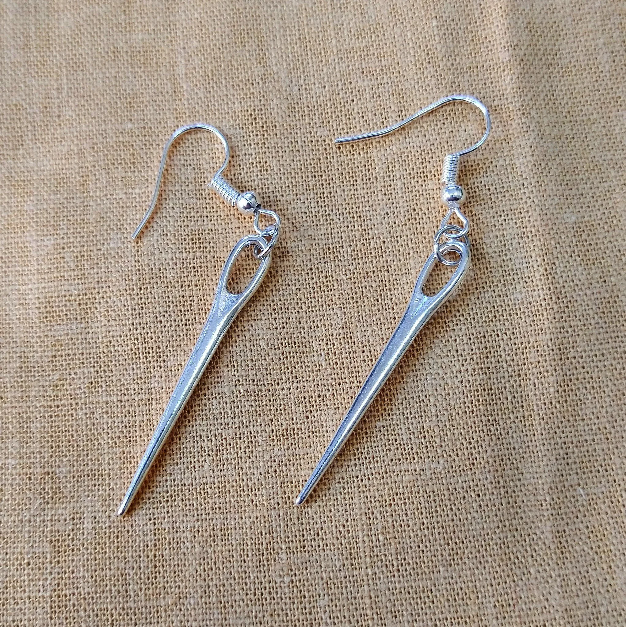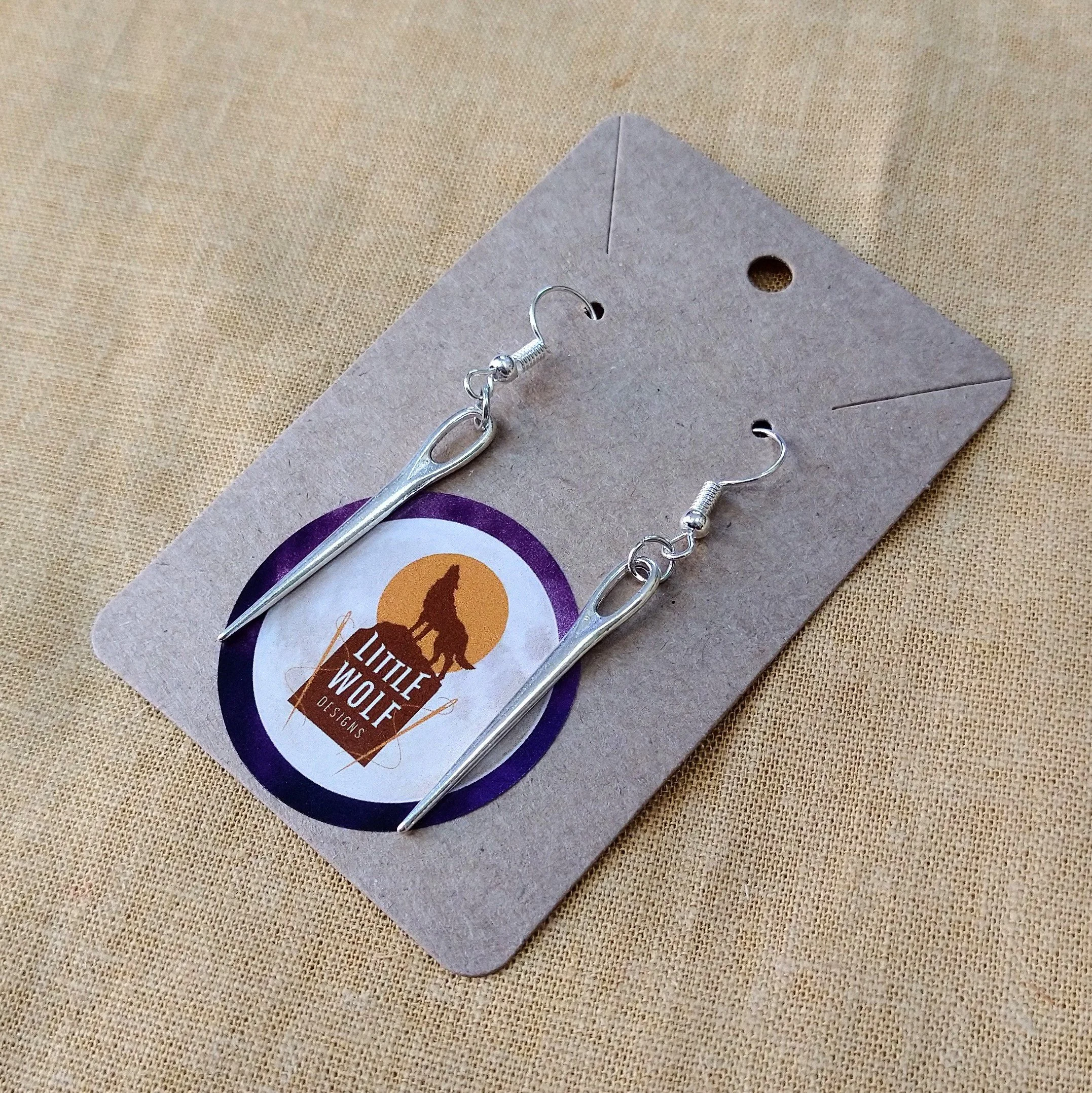 Needle Haberdashery Notion Silver Earrings - Sewing, Embroidery, Needlework Themed Jewellery