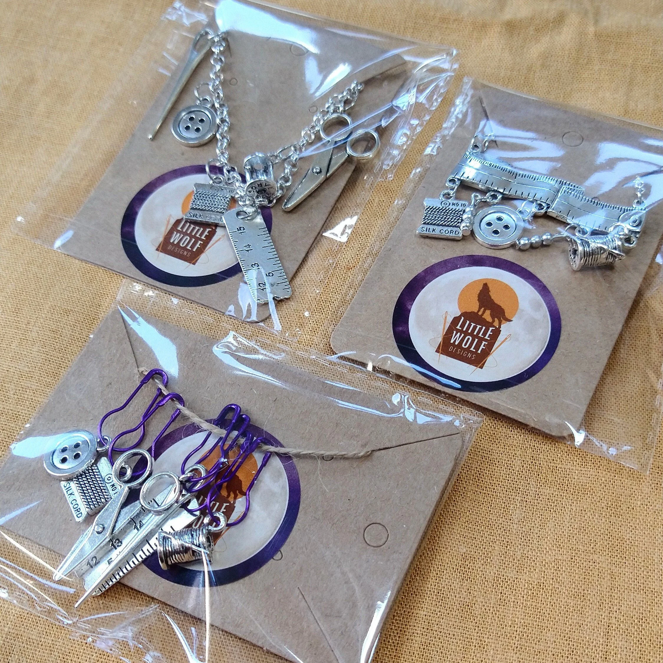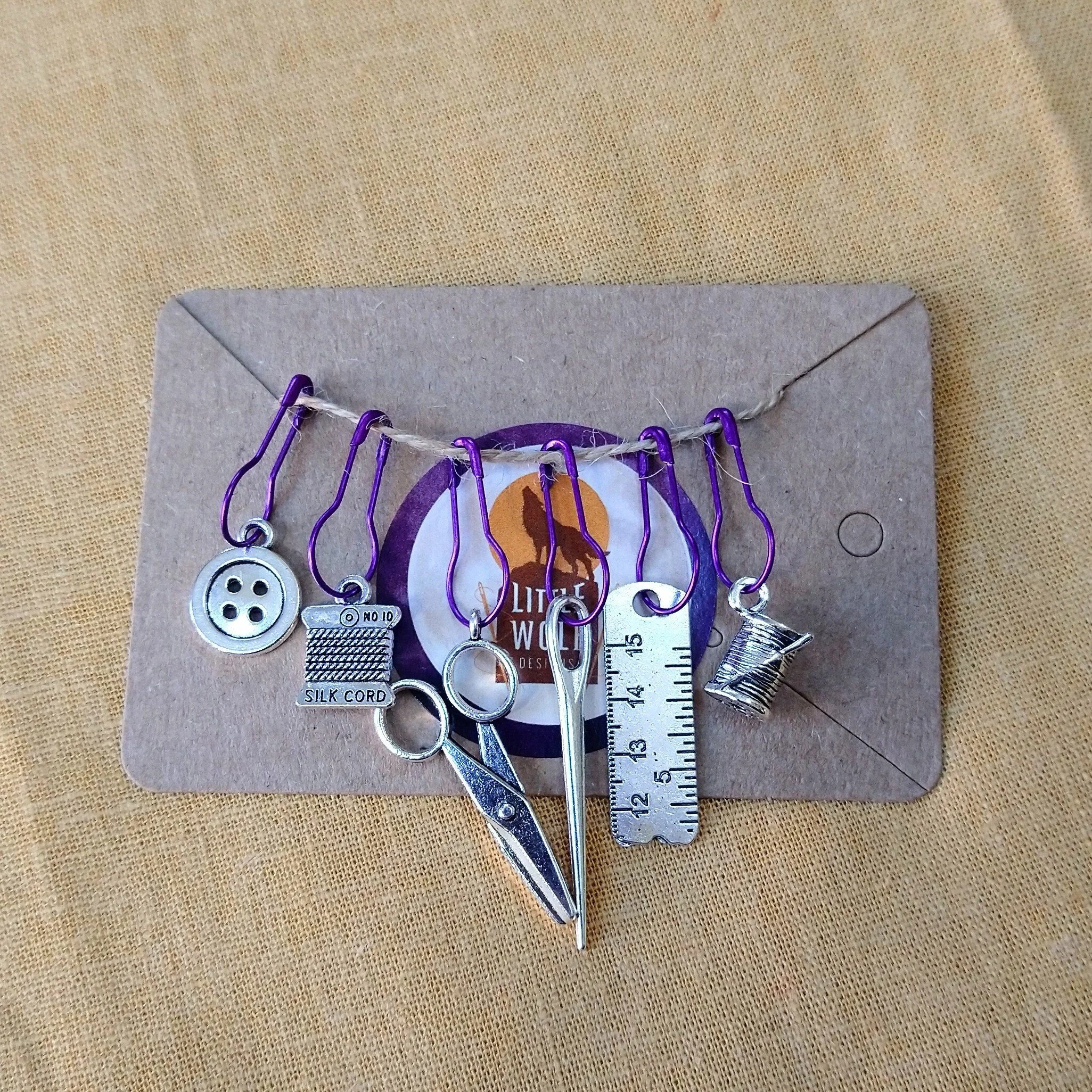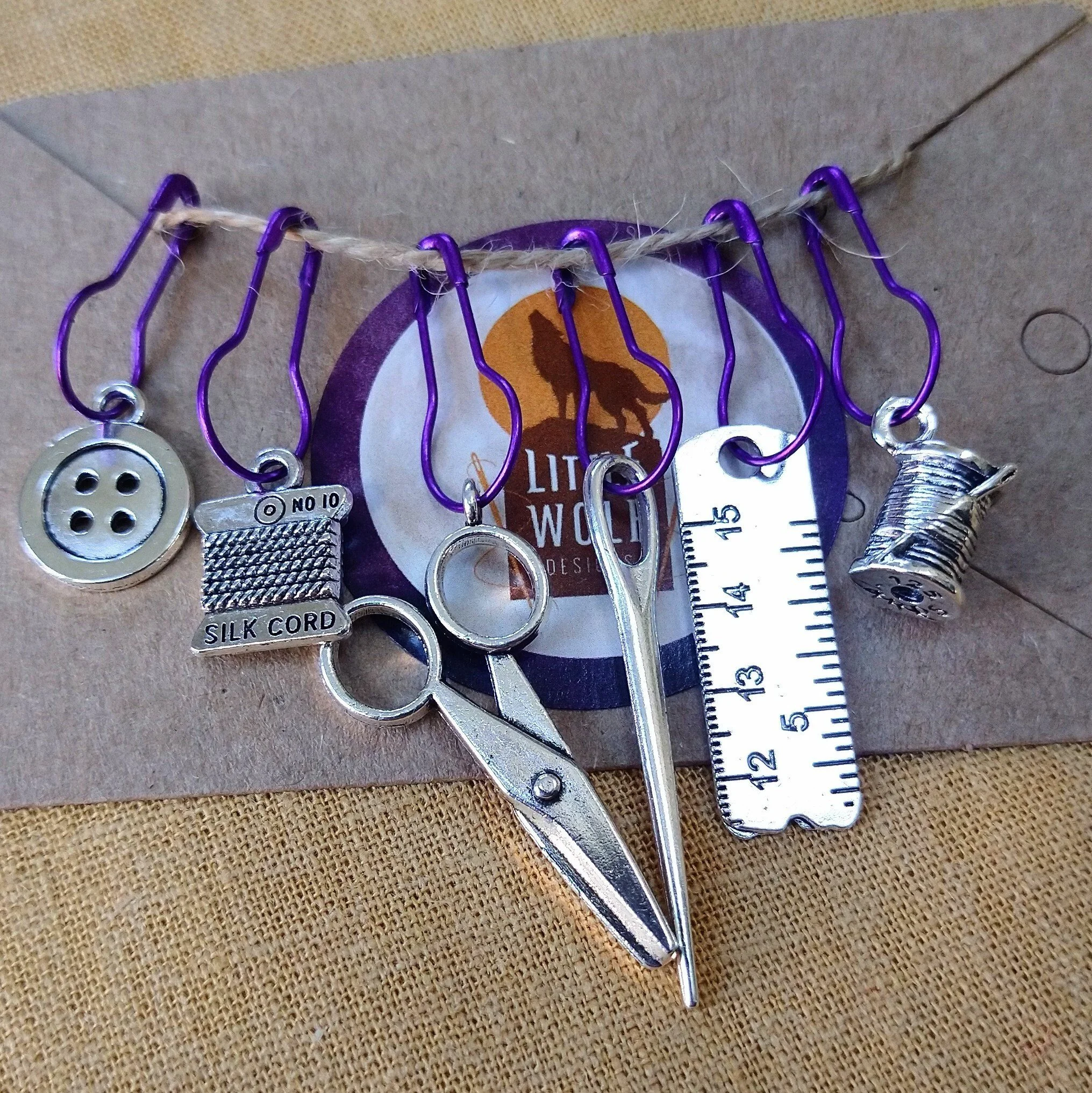 6 Stitch Markers Haberdashery Charms Silver - Sewing Themed Jewellery for Knitting & Crochet