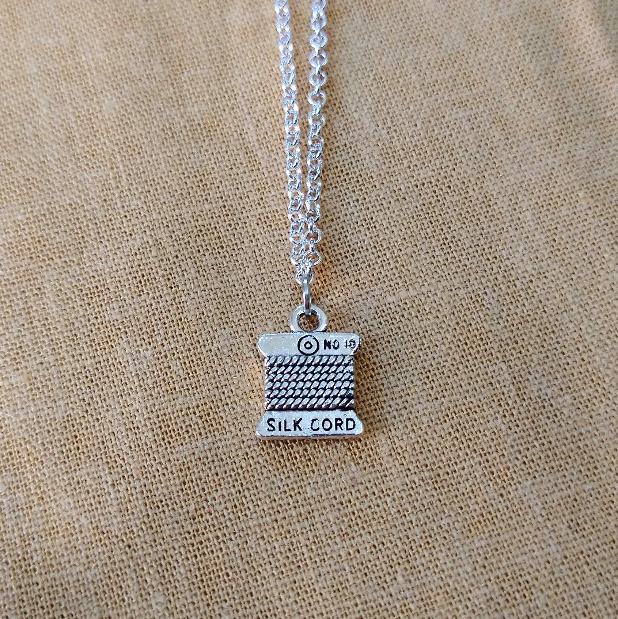 Embroidery Thread Haberdashery Notion Silver Necklace - Sewing Themed Jewellery