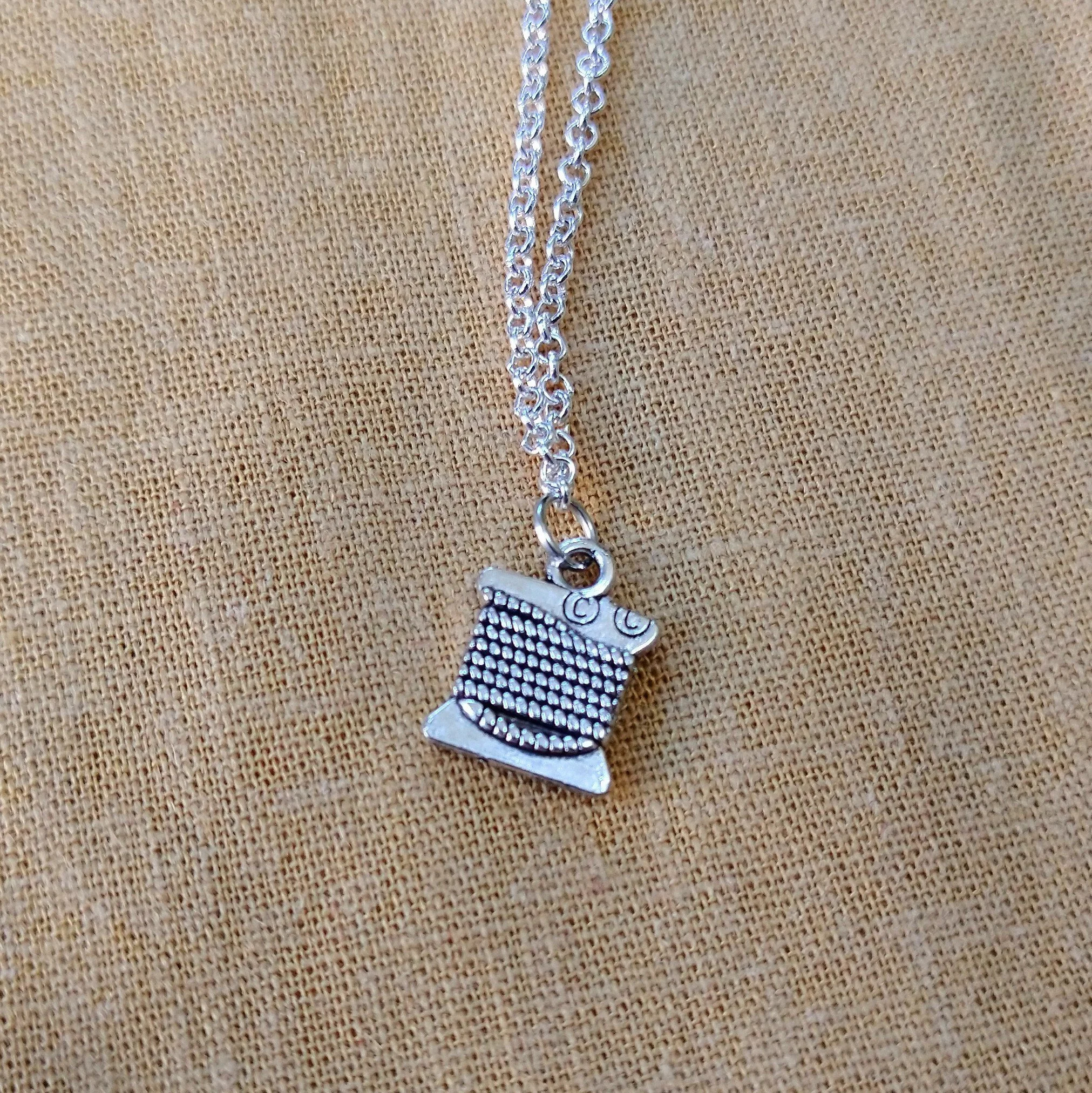 Bobbin Thread Haberdashery Notion Silver Necklace - Sewing Embroidery Themed Jewellery