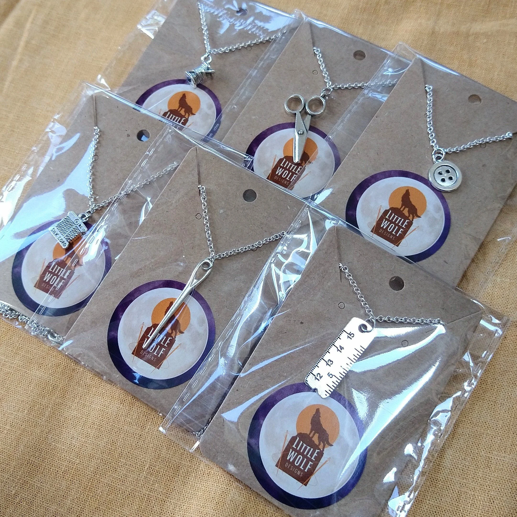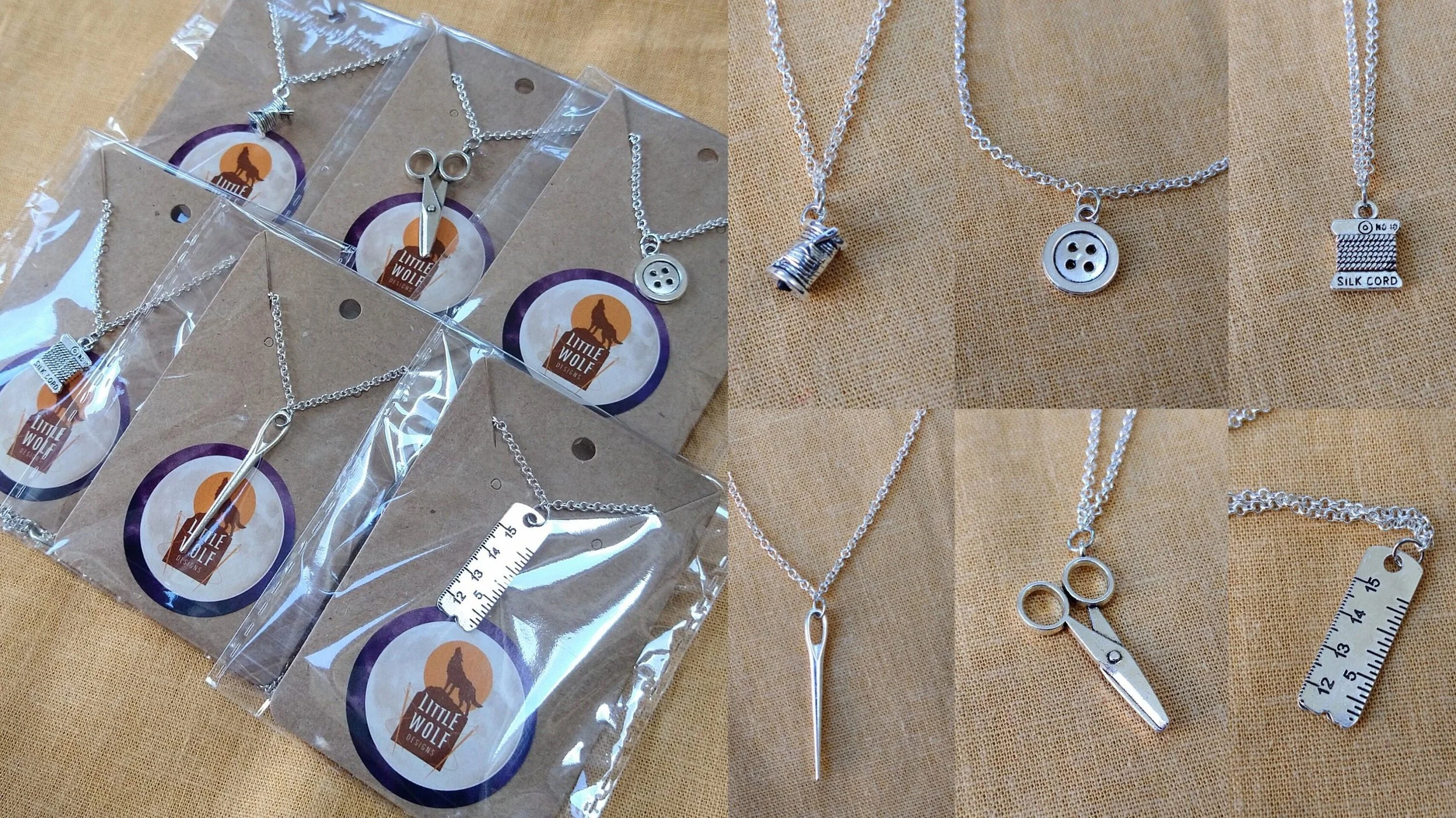 Choose from a selection of 6 Haberdashery themed necklaces.
